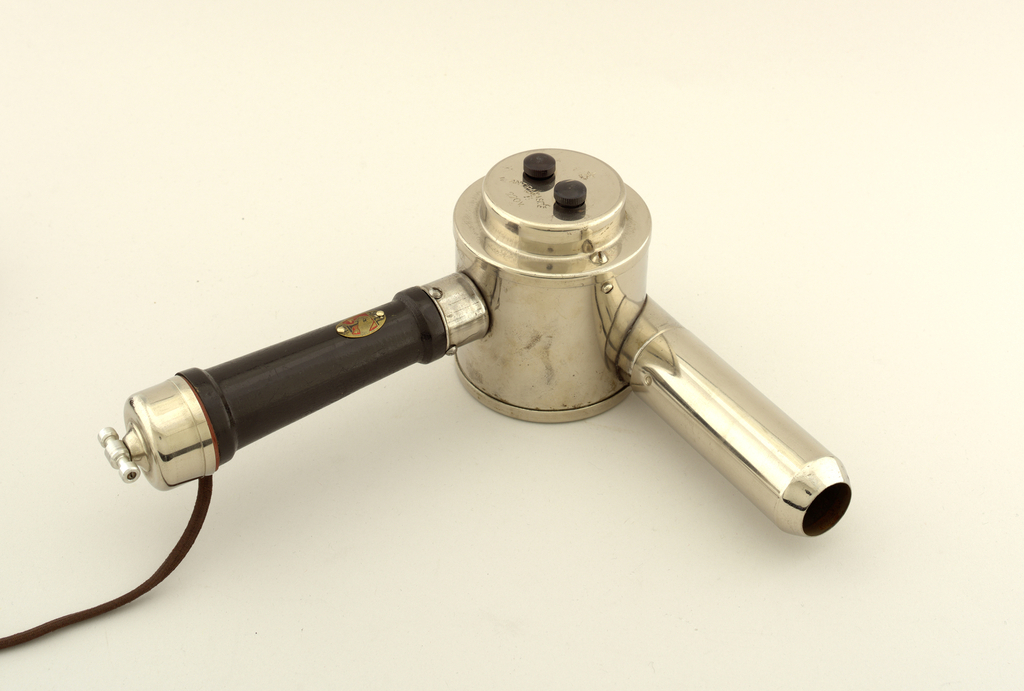 This is a hairdryer. We acquired it in 1986. It is a part of the Product Design and Decorative Arts department.
