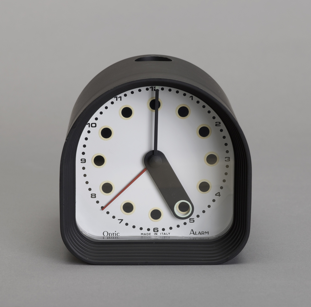 Optic Alarm Alarm Clock; Italy; plastic, metal; H x W x D: 8.3 x 8.3 x 8.3 cm (3 1/4 x 3 1/4 x 3 1/4 in.); Gift of Barry Friedman and Patricia Pastor; 1986-99-39