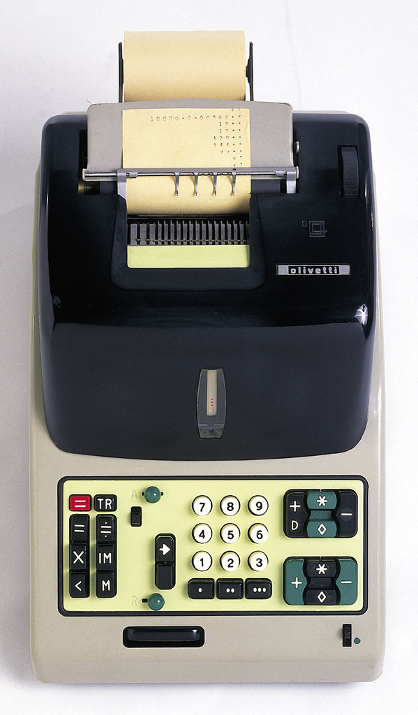 Tetractys 2P Electronic Calculator Calculator; Italy; plastic housing; Overall: 24.8 x 44.5 x 24.5 cm (9 3/4 x 17 1/2 x 9 5/8 in.); Gift of Barry Friedman and Patricia Pastor; 1986-99-4
