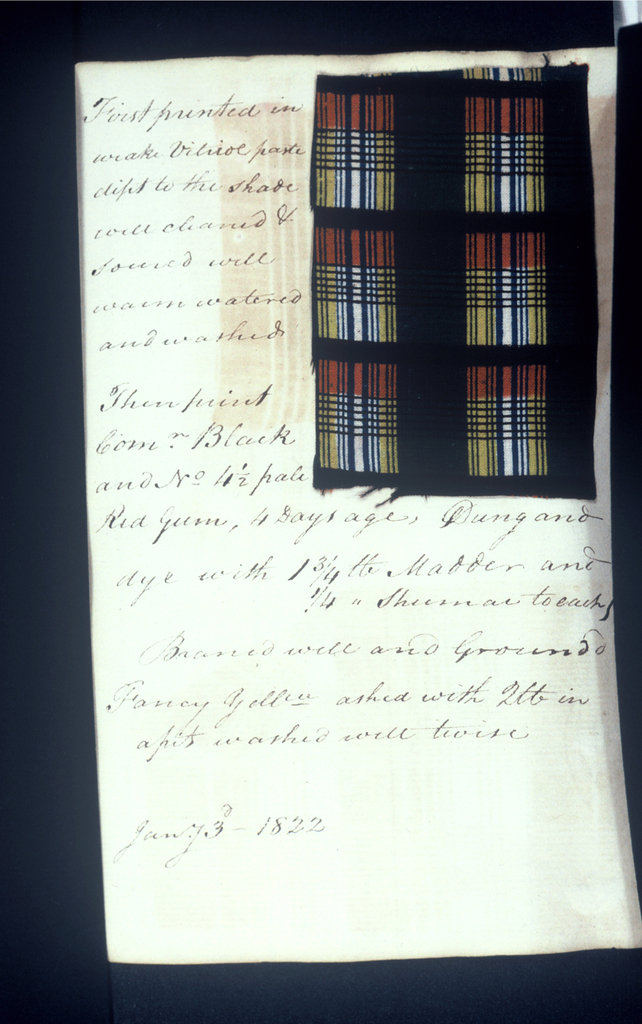 Thomas Ratcliffe, a textile printer from northern England, recorded dye recipes for printed textiles in his personal record book. The recipes are noteworthy for they reveal the types of colorants.