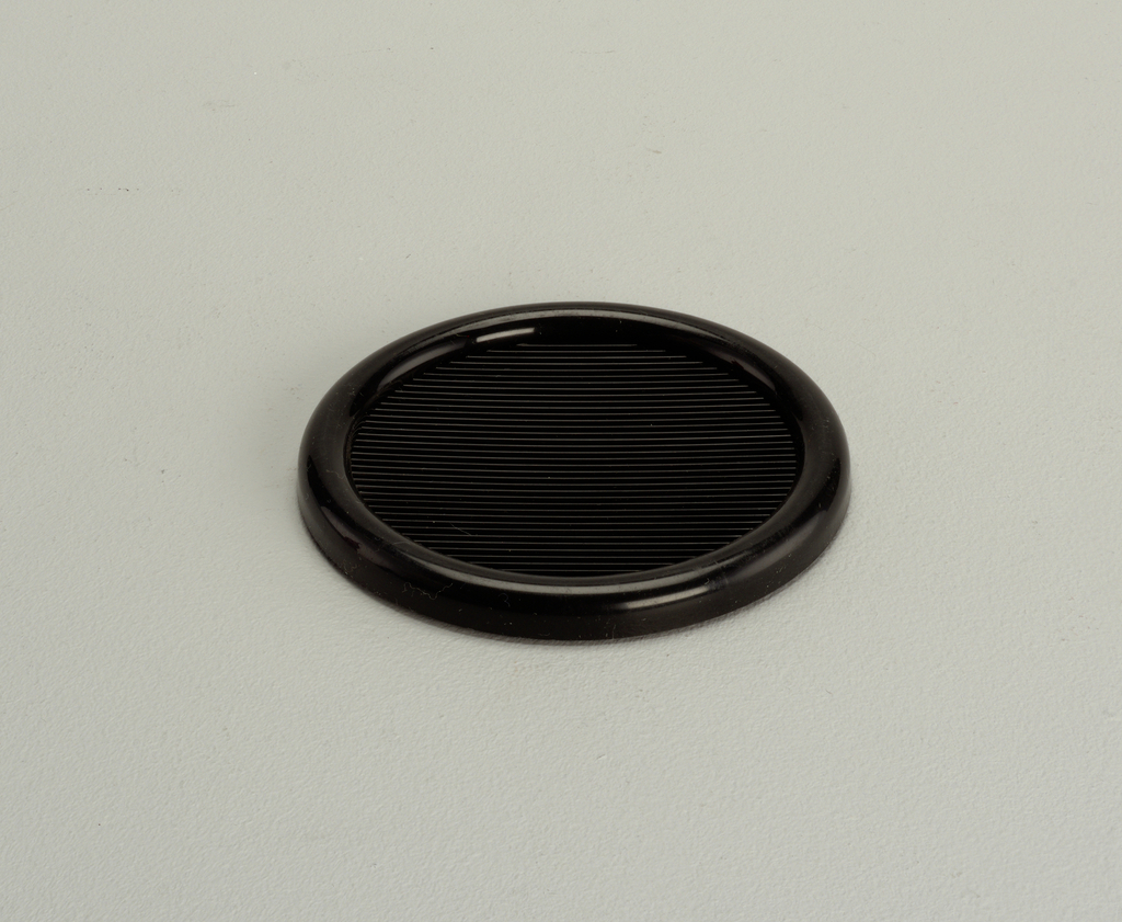 This is a No Slip Coaster. It was designed by George Schmidt, Inc. and manufactured by George Schmidt, Inc. and distributed by IDG Marketing. It is dated ca. 1987 and we acquired it in 1988. Its medium is injection-molded plastic (co-extruded crystal styrene and high-impact styrene). It is a part of the Product Design and Decorative Arts department.
