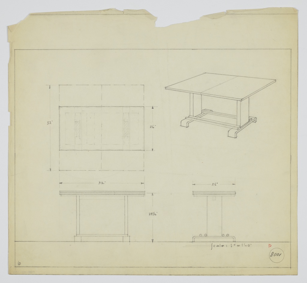 Drawing, Table; Office of Donald Deskey Associates, Donald Deskey (American, 1894–1989); USA; graphite on tracing paper; 34.3 x 37.3 cm (13 1/2 x 14 11/16 in.); Gift of Donald Deskey; 1988-101-1132