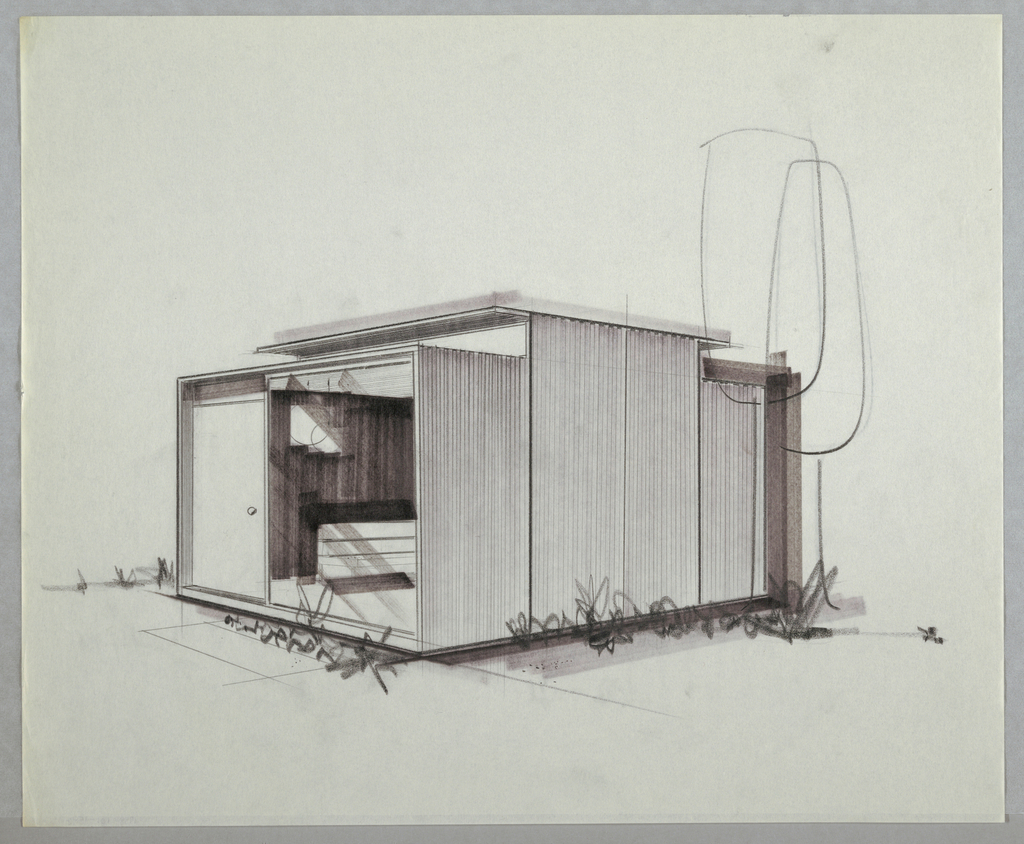 Drawing, Design for Modular Prefabricated House; Office of Donald Deskey Associates; Client: Union Carbide Corporation (United States); USA; graphite, black marker on tracing paper; 35.3 x 42.8 cm (13 7/8 x 16 7/8 in.); Gift of Donald Deskey; 1988-101-1596