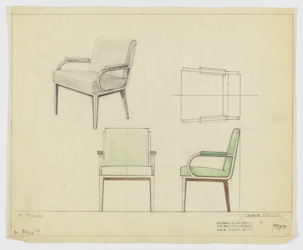 Stamps: Stamp in black ink at lower right: Donald Deskey/145 West 57th Street/New York City