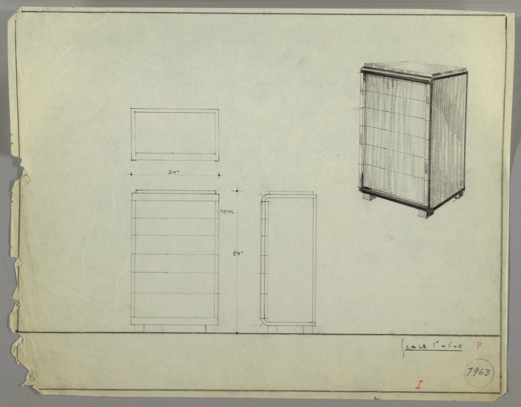 This is a Drawing. It was from the office of Donald Deskey and Donald Deskey Associates. It is dated ca. 1934 and we acquired it in 1988. Its medium is graphite on tracing paper. It is a part of the Drawings, Prints, and Graphic Design department.