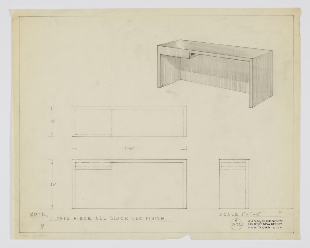 Drawing, Design for Desk; Office of Donald Deskey Associates, Donald Deskey (American, 1894–1989); USA; graphite on tracing paper; 29.7 x 37.1 cm (11 11/16 x 14 5/8 in.); Gift of Donald Deskey; 1988-101-747