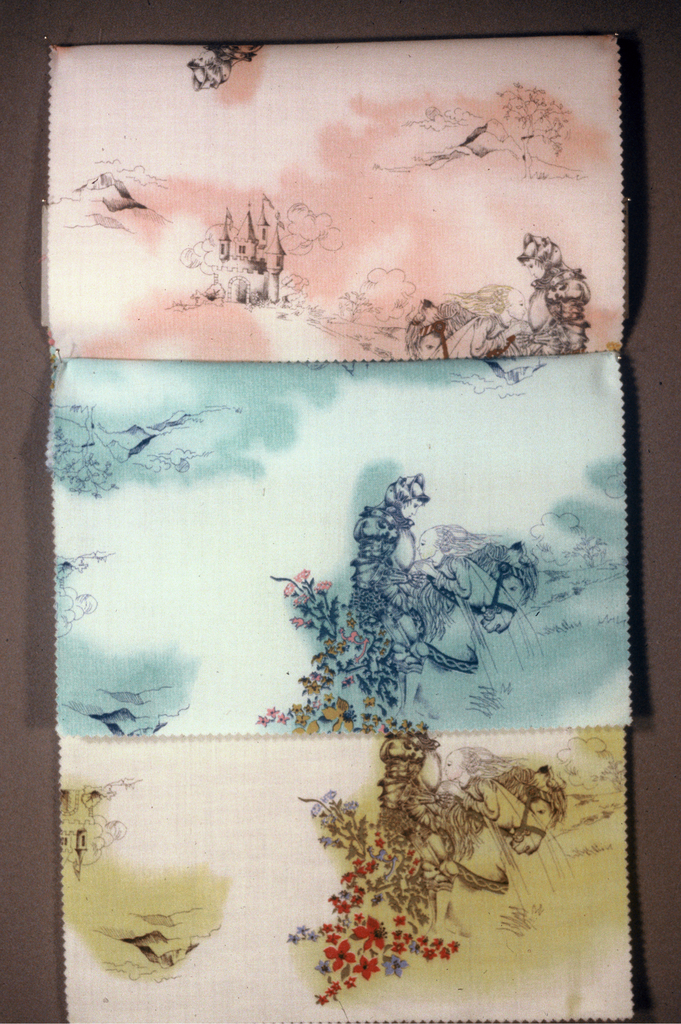 Height: 43cm (17in.). Width: 30.5cm (12in.). a/d have been stapled together with manufacturer's identification to be submitted to client as colorways.