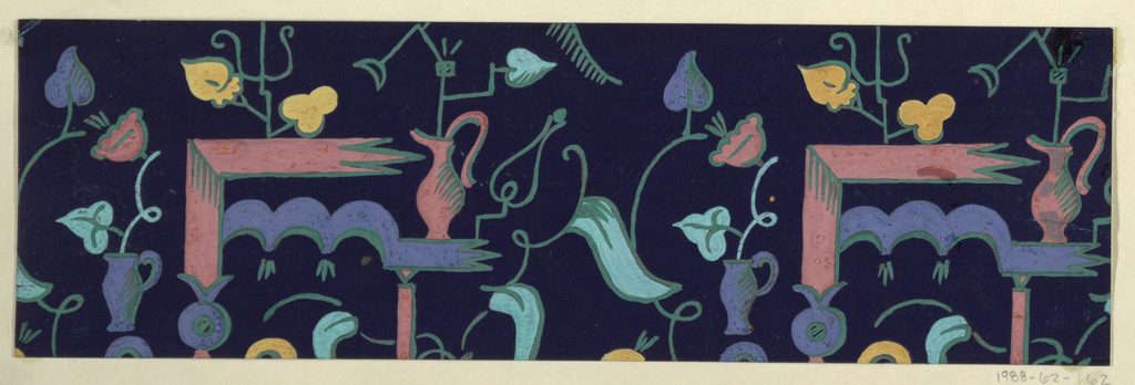 Drawing, Textile Design: Bethlehem; Designed by Mitzi Friedmann-Otten (Austrian, 1884 - 1955); Made for Wiener Werkstätte (Austria); Austria; brush and gouache on paper; 7.4 x 21.5 cm (2 15/16 x 8 7/16 in.); Museum purchase from Smithsonian Collections Acquisition and Decorative Arts Association Acquisition Funds; 1988-62-162