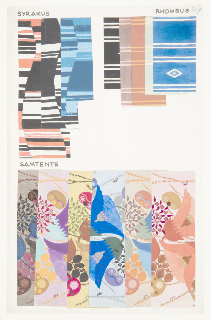 Drawing, Textile Design: Samtente; Made for Wiener Werkstätte (Austria); brush and gouache on paper; H x W: 20.3 × 5.1 cm (8 × 2 in.) Mat: 40.6 × 50.8 cm (16 × 20 in.); Museum purchase from Smithsonian Collections Acquisition and Decorative Arts Association Acquisition Funds; 1988-62-171