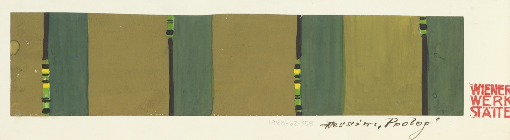 Drawing, Textile Design: Prolog (Prologue); Designed by Maria Likarz Strauss (Austrian, 1893–1971); Made for Wiener Werkstätte (Austria); Austria; brush and gouache on paper; 5.7 x 21.5 cm (2 1/4 x 8 7/16 in.), irregular Mat: 32.5 x 46 cm (12 13/16 x 18 1/8 in.); Museum purchase from Smithsonian Collections Acquisition and Decorative Arts Association Acquisition Funds; 1988-62-358