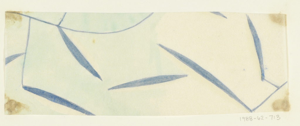 Drawing, Textile Design: Daphne; Designed by Dagobert Peche (Austrian, 1887–1923, active Vienna, 1911–1923); Made for Wiener Werkstätte (Austria); Austria; brush and watercolor on paper; 5.1 × 13.8 cm (2 in. × 5 7/16 in.) Mat: 31.4 × 45.1 cm (12 3/8 × 17 3/4 in.); Museum purchase from Smithsonian Collections Acquisition and Decorative Arts Association Acquisition Funds; 1988-62-713