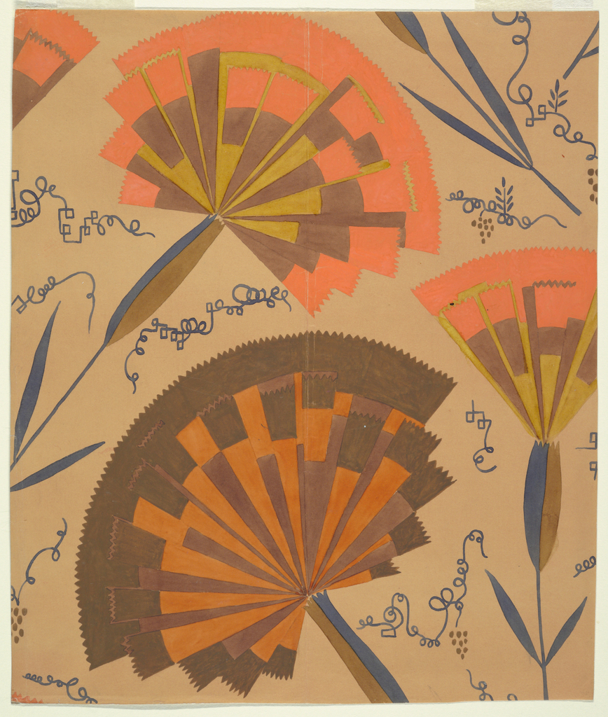 This is a Drawing. It was made for Wiener Werkstätte. It is dated 1924 and we acquired it in 1988. Its medium is brush and gouache on paper. It is a part of the Drawings, Prints, and Graphic Design department.