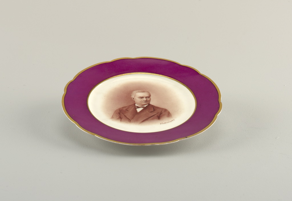 Portrait of Fyodor Notgaft Plate; porcelain, enamel, gilding; Diameter: 21 cm (8 1/4 in.); The Henry and Ludmilla Shapiro Collection; Partial gift and partial purchase through the Decorative Arts Association Acquisition and Smithsonian Collections Acquisition Program Funds; 1989-41-1