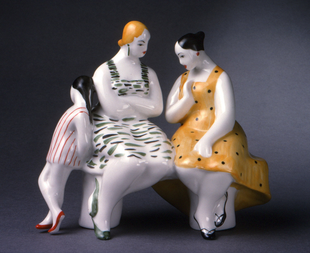 The Gossips Figure; Designed by Margarita Evganyevna Permiak (1928 – 1973); Manufactured by Dmitrov Porcelain Factory (Russia); enameled porcelain; 14.5 cm (5 11/16 in.); The Henry and Ludmilla Shapiro Collection; Partial gift and partial purchase through the Decorative Arts Association Acquisition and Smithsonian Collections Acquisition Program Funds; 1989-41-228