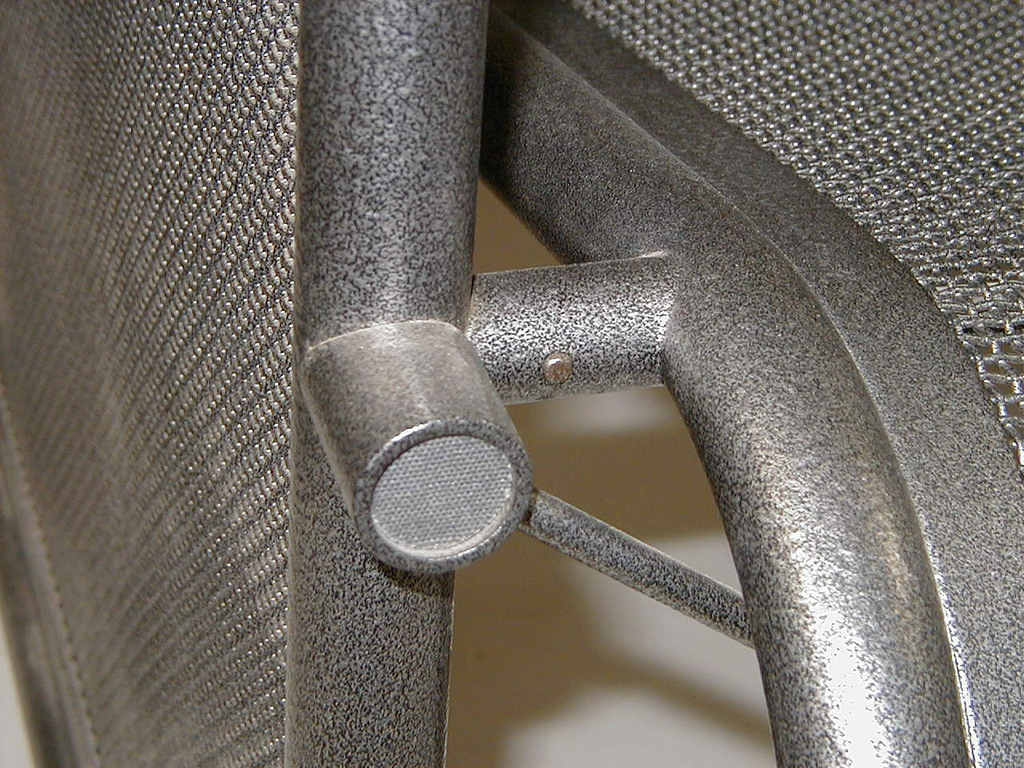 Ronald Sportes, a leading contemporary French architect and designer, is known internationally mainly for his large architectural projects, designed this mesh armchair to furnish the former French president François Mitterrand’s private apartments at the Elysée Palace. For this project, Sportes reinterpreted the classic armchair, a plush and comfortable staple, creating instead this curvilinear, cold – yet elegant, sculptural, modernist piece of furniture.