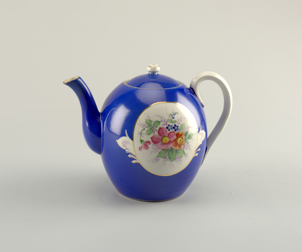 Teapot And Lid (Russia); Manufactured by Gardner Porcelain Factory (Russia); enameled and gilt porcelain; H x W (a,b: overall): 17.3 x 22 cm (6 13/16 x 8 11/16 in.) H x W (a: teapot): 16 x 22 cm (6 5/16 x 8 11/16 in.) H x diam. (b: lid): 3.4 x 7.5 cm (1 5/16 x 2 15/16 in.); Gift of Anna Kayaloff; 1990-117-1-a,b