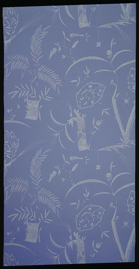 This is a Sidewall. It was designed by Dagobert Peche and manufactured by Flammersheim & Steinmann. It is dated 1921–22 and we acquired it in 1990. Its medium is machine-printed paper. It is a part of the Wallcoverings department.
