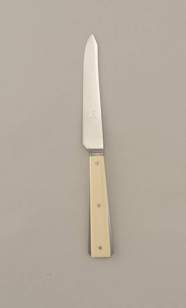 This is a knife. It was made by Loius Pernet Eloi and retailed by Maison Pernet. It is dated early 20th century and we acquired it in 1990. Its medium is steel, ivory. It is a part of the Product Design and Decorative Arts department.