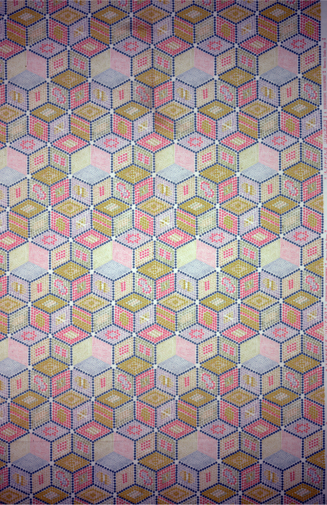 Textile, Little Boxes; Made by Warner Fabrics; England; cotton; Warp x Weft: 284 x 126 cm (9 ft. 3 13/16 in. x 49 5/8 in.) Repeat H: 68 cm (26 3/4 in.); Gift of Warner Fabrics, plc; 1991-103-2