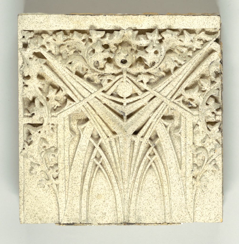 This is a Architectural panel. It was modeled by Kristian Schneider and manufactured by Northwestern Terra Cotta. It is dated ca. 1899 and we acquired it in 1991. Its medium is molded terracotta. It is a part of the Product Design and Decorative Arts department.