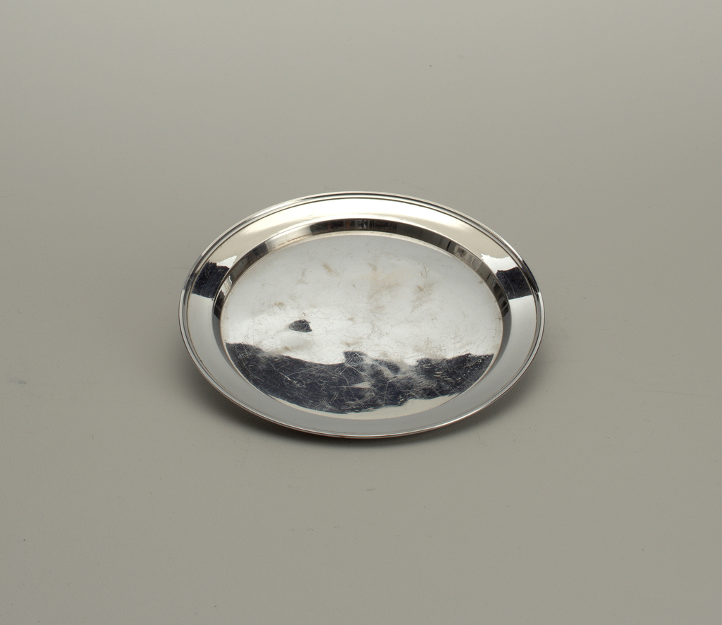 Tray; Manufactured by Chase Brass & Copper Co. (United States); polished chromium; Overall: 1.4 x 20.4 diameter cm (9/16 x 8 1/16 in.); Gift of Mel Byars; 1991-59-127