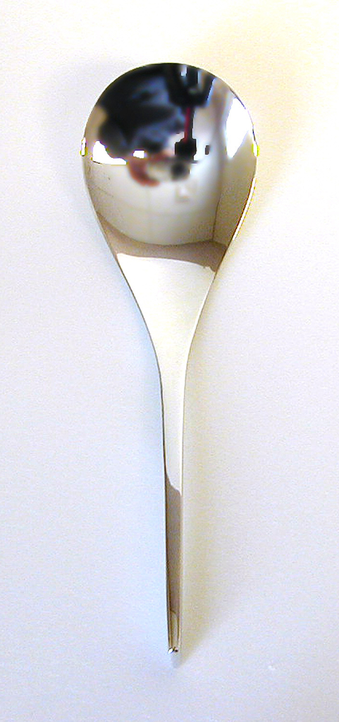 This is a spoon. It was designed by Bibs Hosak-Robb and manufactured by Robbe & Berking. It is dated 1985 and we acquired it in 1991. Its medium is metal (silver-plated). It is a part of the Product Design and Decorative Arts department.