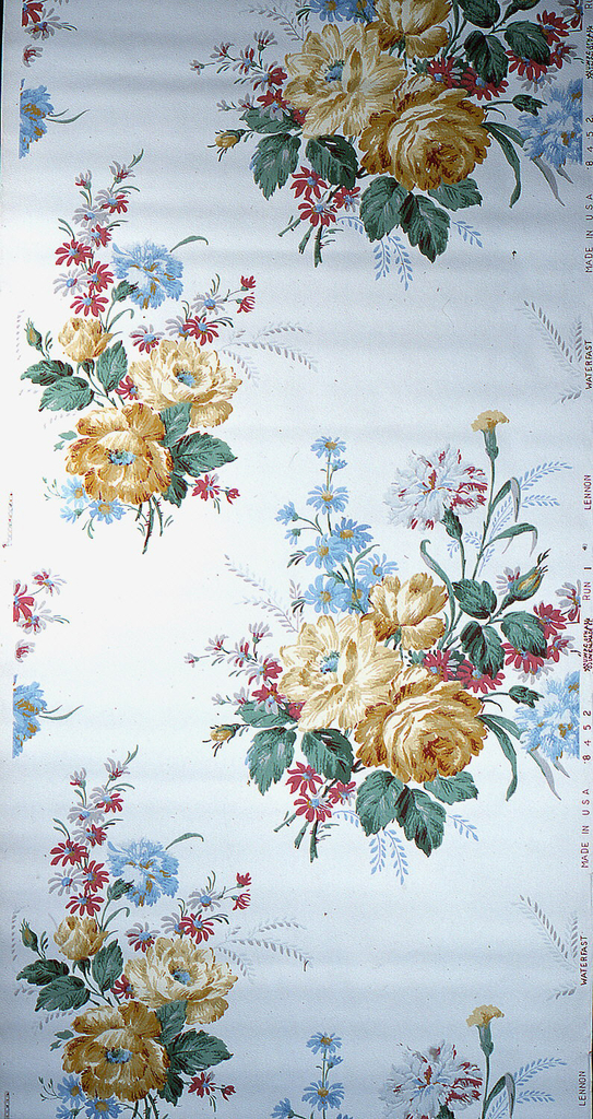 This is a Sidewall. It was manufactured by Lennon Wall Paper Company. It is dated 1936–56 and we acquired it in 1991. Its medium is machine-printed, textured ground. It is a part of the Wallcoverings department.