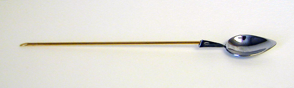 This is a Teaspoon. It is dated 1991 and we acquired it in 1992. Its medium is stainless steel, gold plate. It is a part of the Product Design and Decorative Arts department.