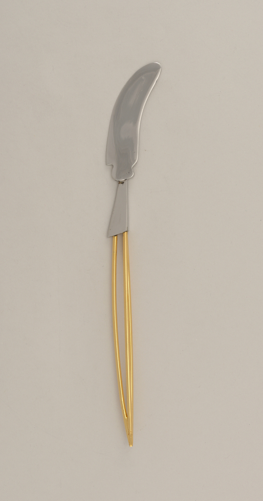 Knife; stainless steel, gold plate; L x W x D: 20.5 x 1.8 x 1.1 cm (8 1/16 x 11/16 x 7/16 in.); Museum purchase from Decorative Arts Association Acquisition Fund; 1992-32-3
