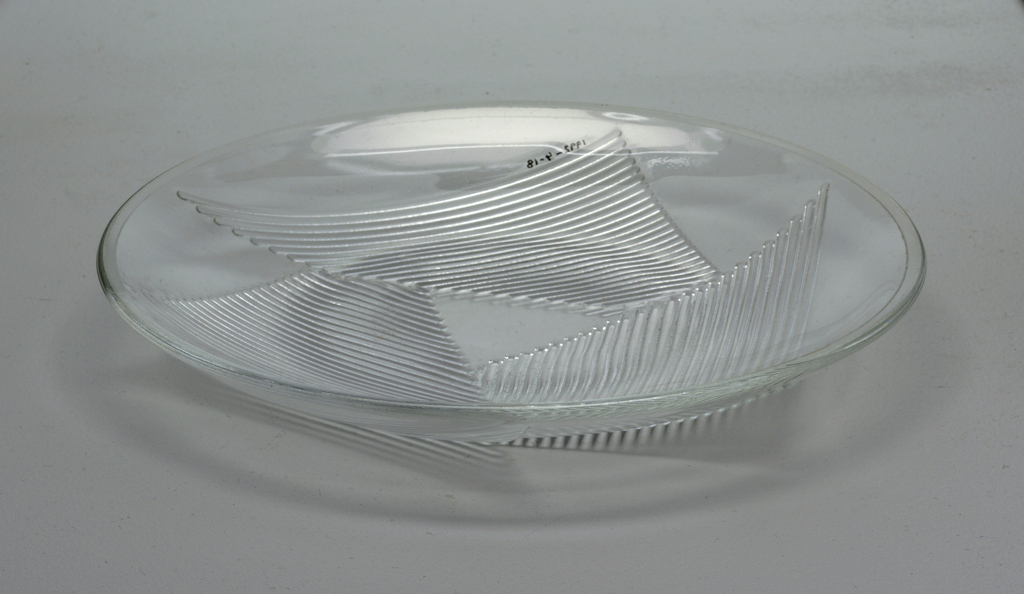 This is a plate. It was designed by Marrku Salo and Markku Salo and produced by iitala/Nuutajarvi. We acquired it in 1992. Its medium is glass. It is a part of the Product Design and Decorative Arts department.