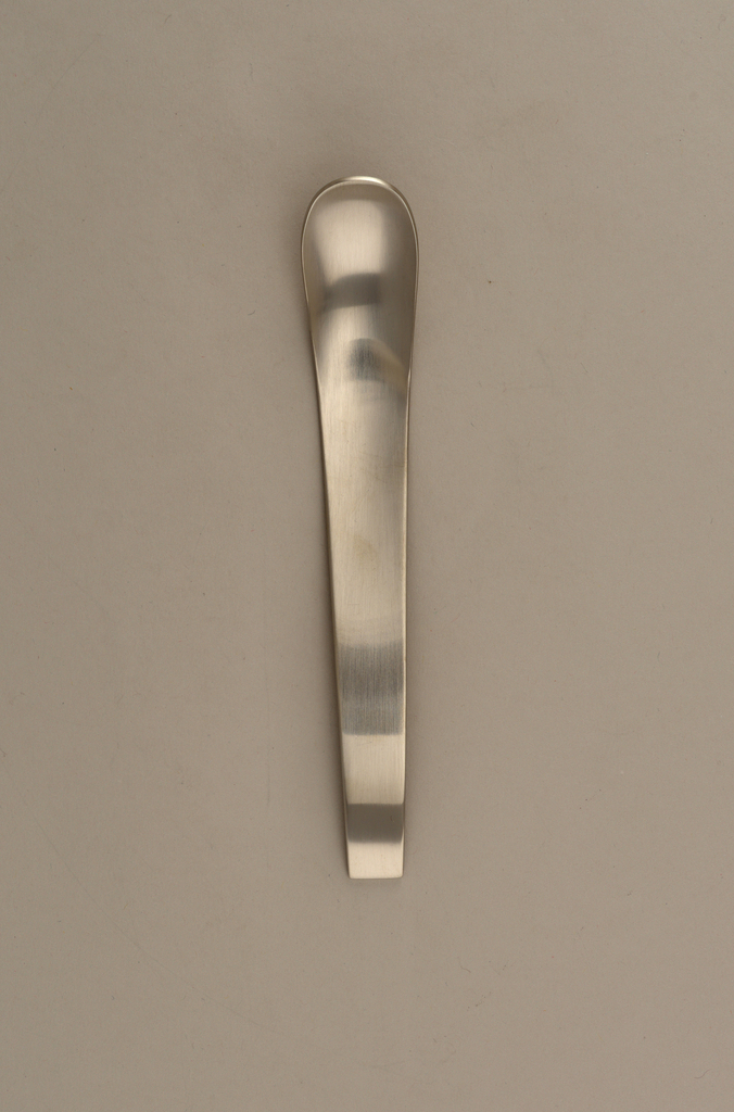 This is a spoon. It was designed by Ralph Krämer and manufactured by Mono-Metallwarenfabrik Seibel GmbH. It is dated 1991 and we acquired it in 1992. Its medium is steel (stainless). It is a part of the Product Design and Decorative Arts department.