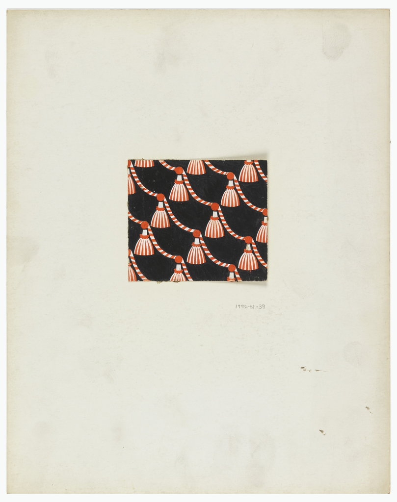Drawing, Tassel Pattern, Textile Design; Designed by Tommi Parzinger (American, b. Germany, 1903–1981); USA; brush and gouache, graphite on paper, lined; 8.8 x 10 cm (3 7/16 x 3 15/16 in.); Gift of Donald Cameron; 1992-51-39