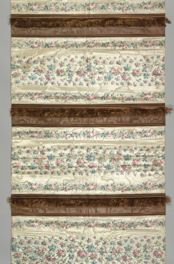This is a Textile. It is dated ca. 1855 and we acquired it in 1993. Its medium is silk and its technique is warp printed and moired. It is a part of the Textiles department.