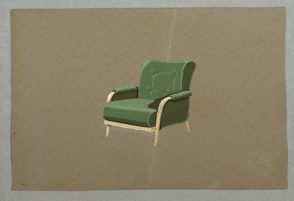 Drawing, Green armchair; Designed by Alfons Bach (American, b. Germany, 1904–1999); USA; chalk, watercolor; Gift of Alfons Bach; 1993-108-176