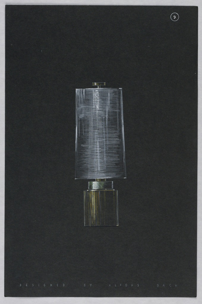 Drawing, 9. Table lamp with oblong; Designed by Alfons Bach (American, b. Germany, 1904–1999); USA; chalk, watercolor, wash, black paper; Gift of Alfons Bach; 1993-108-77