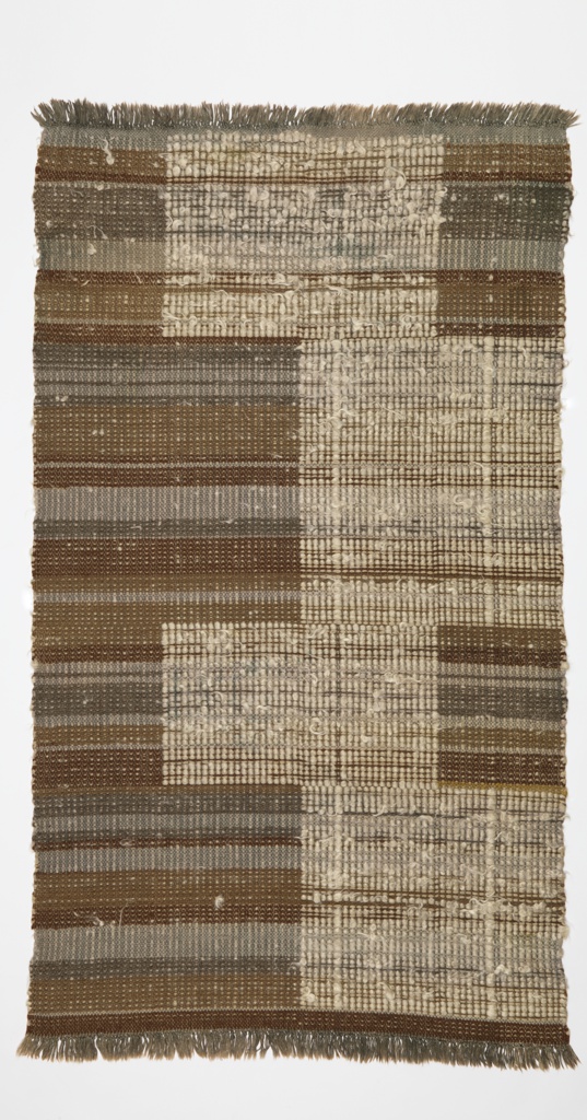 This is a Hanging. It was designed by Trude Guermonprez. It is dated 1955–75 and we acquired it in 1993. Its medium is cotton warp, wool weft and its technique is plain weave with supplementary weft. It is a part of the Textiles department.