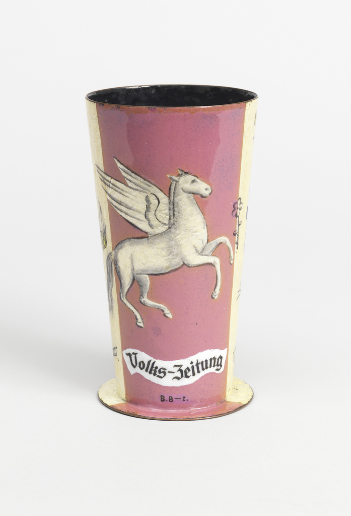 <ref name=CH>{{cite web |url=https://www-6.collection.cooperhewitt.org/objects/18643691/ |title=Volks-Zeitung Vase |author=Cooper Hewitt, Smithsonian Design Museum |accessdate=20 December 2025 |publisher=Smithsonian Institution}}</ref>