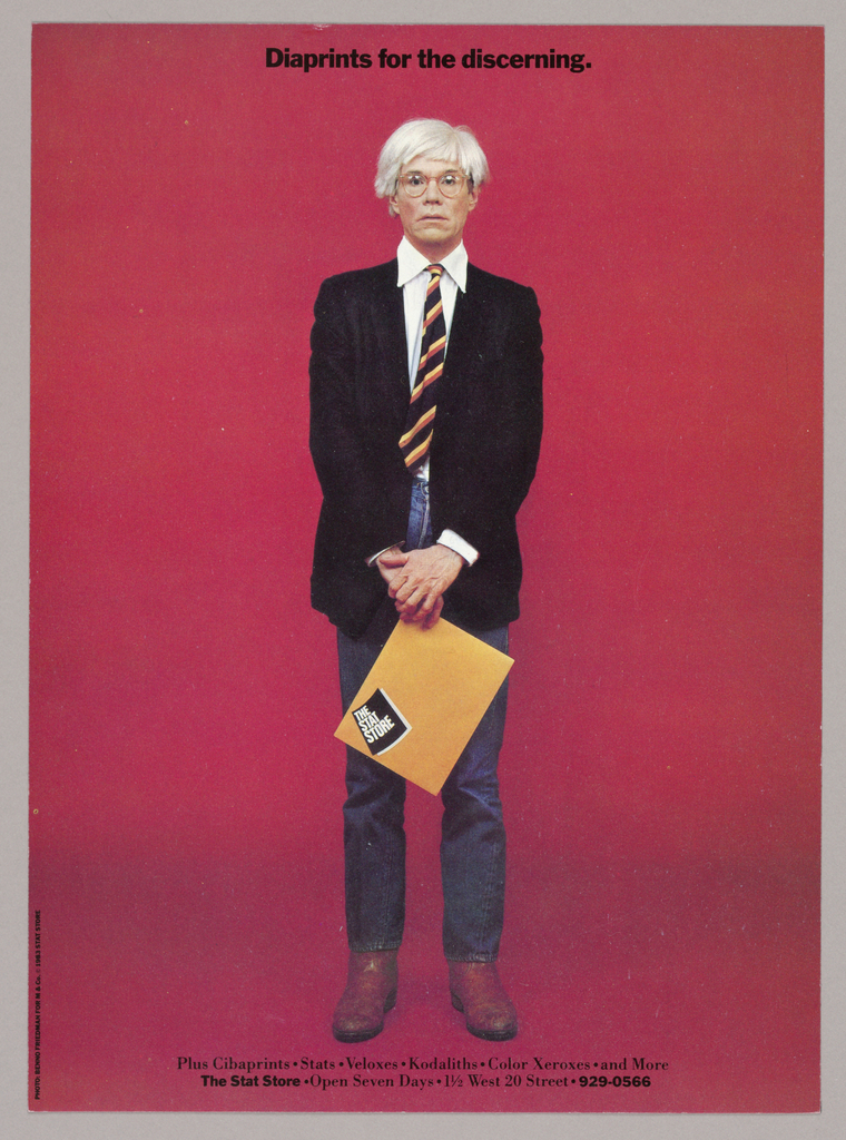 Advertisement, Stat Store: Andy Warhol/ Diaprints; Design Director: Tibor Kalman (American, b. Hungary, 1949–1999); Firm: M&Co (United States); USA; offset lithography; 24.7 x 18 cm (9 3/4 x 7 1/16 in.); Gift of Tibor Kalman/ M & Co.; 1993-151-247