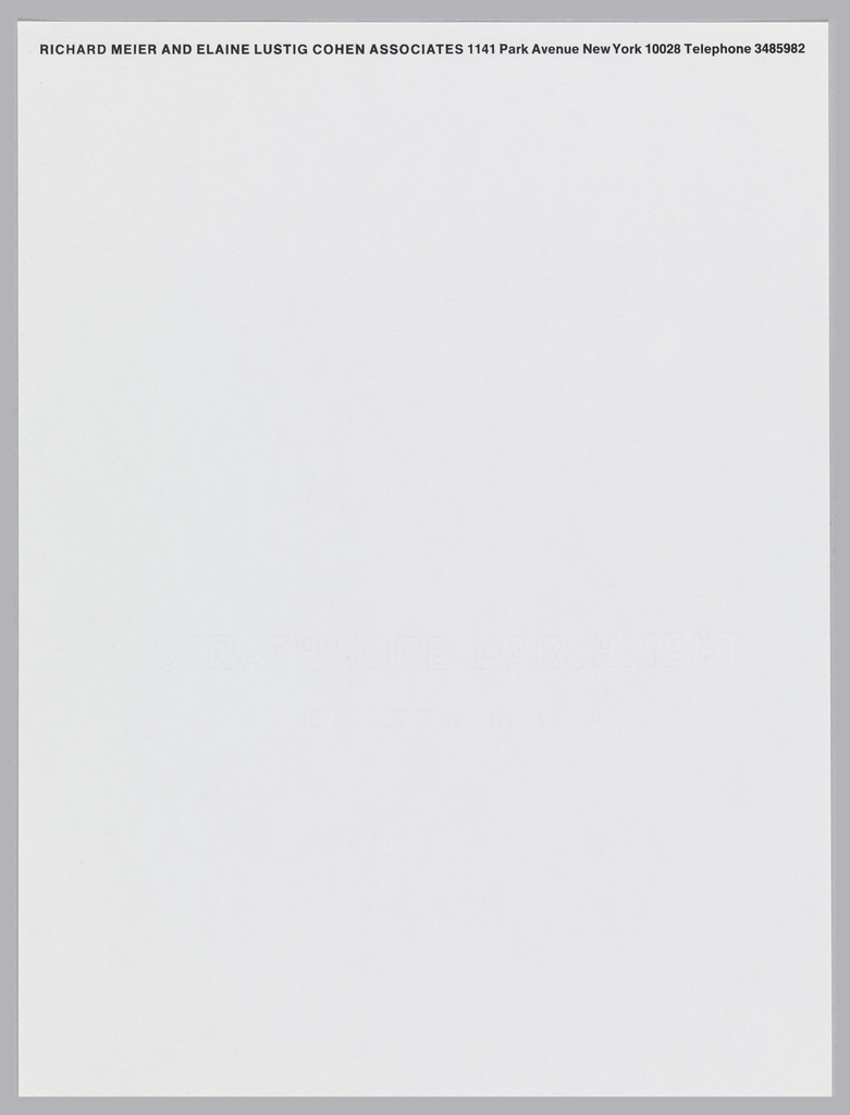 Letterhead, Richard Meier and Elaine Lustig Cohen Associates, 1141 Park Avenue, New York, NY; Designed by Elaine Lustig Cohen (American, 1927–2016); USA; letterpress on white wove paper; H x W: 28 x 21.1 cm (11 in. x 8 5/16 in.); Gift of Tamar Cohen and Dave Slatoff; 1993-31-101
