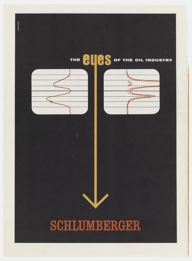 Print, Advertisement, Schlumberger, The Eyes of the Oil Industry; Designed by Elaine Lustig Cohen (American, 1927–2016); USA; lithograph on white glossy wove paper; H x W: 28 x 21 cm (11 in. x 8 1/4 in.); Gift of Tamar Cohen and Dave Slatoff; 1993-31-124