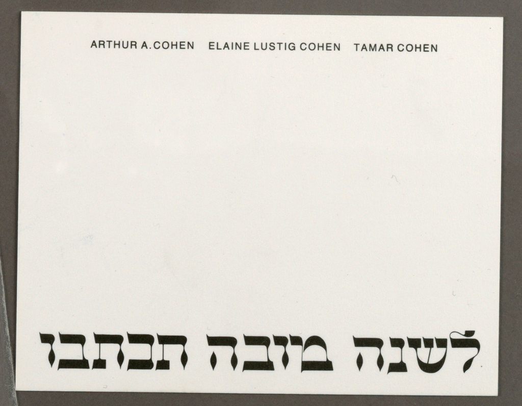 Card, Jewish New Year, 1960, Arthur A. Cohen, Elaine Lustig Cohen, Tamar Cohen