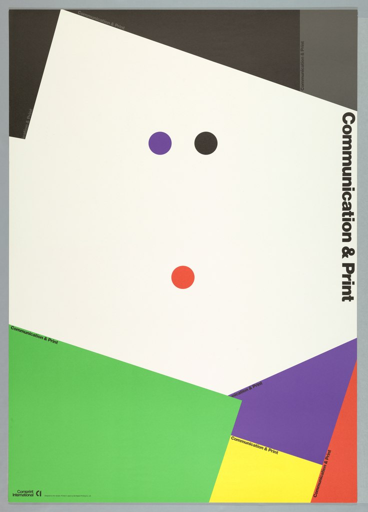 Imprinted in black ink, right margin: Communication & Print; at lower left: Comprint/International/Designed by Ikko Tanaka Printed in Japan by Dai Nippon Printing Co., LTD.