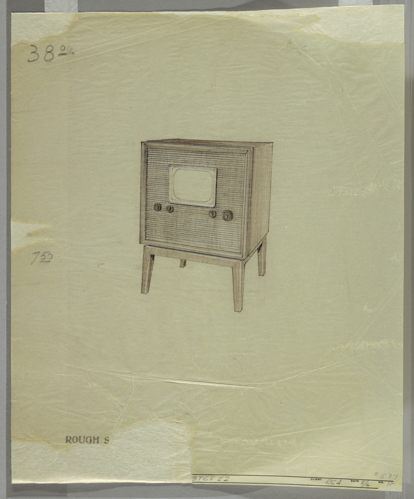 Drawing, Television set; Designed by Henry Dreyfuss Associates (United States); USA; graphite, brown, white color pencil on tracing paper; 42.1 x 35 cm (16 9/16 x 13 3/4 in.); Gift of John Bruce; 1993-65-17