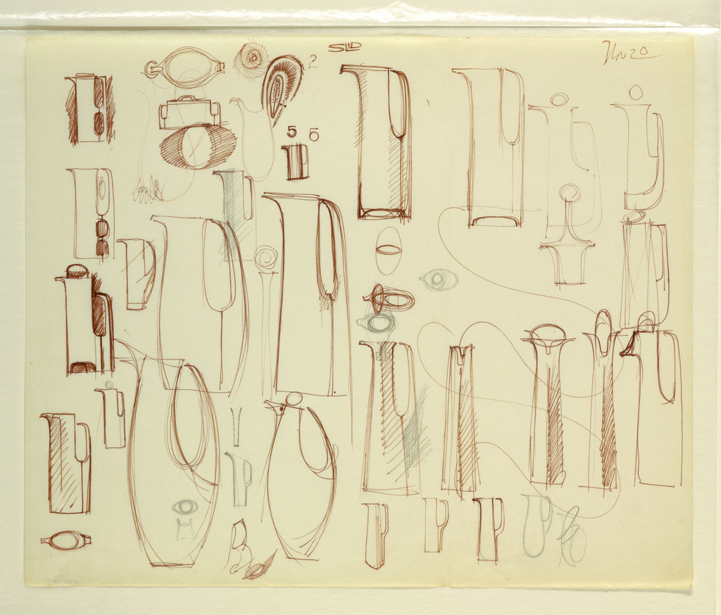 Drawing, Studies of pitchers; Designed by Gerald Gulotta (American, 1921 - 2018); USA; off-white paper; Gift of Gerald Gulotta; 1993-89-7