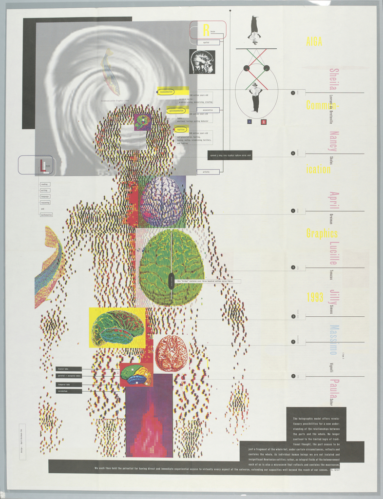 Poster, AIGA Communication Graphics: Holographic Model; Designed by April Greiman (American, b. 1948); Published by American Institute of Graphic Arts; USA; offset lithograph on paper; 112.2 x 86.3 cm (44 3/16 in. x 34 in.); Gift of Unknown Donor; 1994-114-6