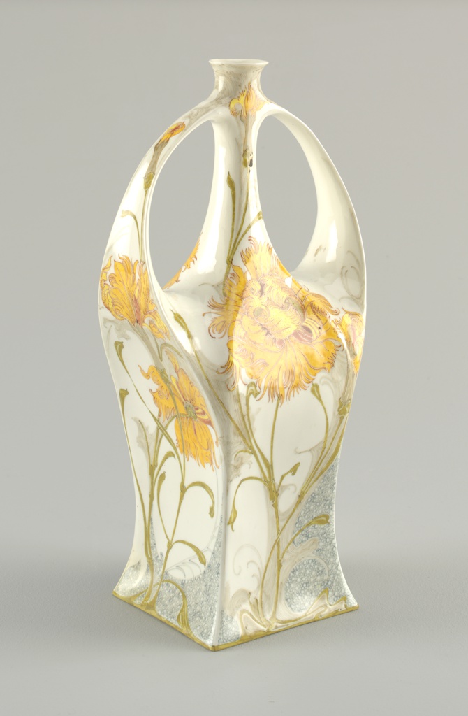 Two-Handled Vase Vase; Manufactured by Rozenburg Pottery and Porcelain Factory (Netherlands); Painted by Samuel Schellink (1876 – 1958); Netherlands; porcelain, vitreous enamel; H x W x D: 28.7 x 14 x 10cm (11 5/16 x 5 1/2 x 3 15/16in.); Gift of Arthur Altschul; 1994-117-2