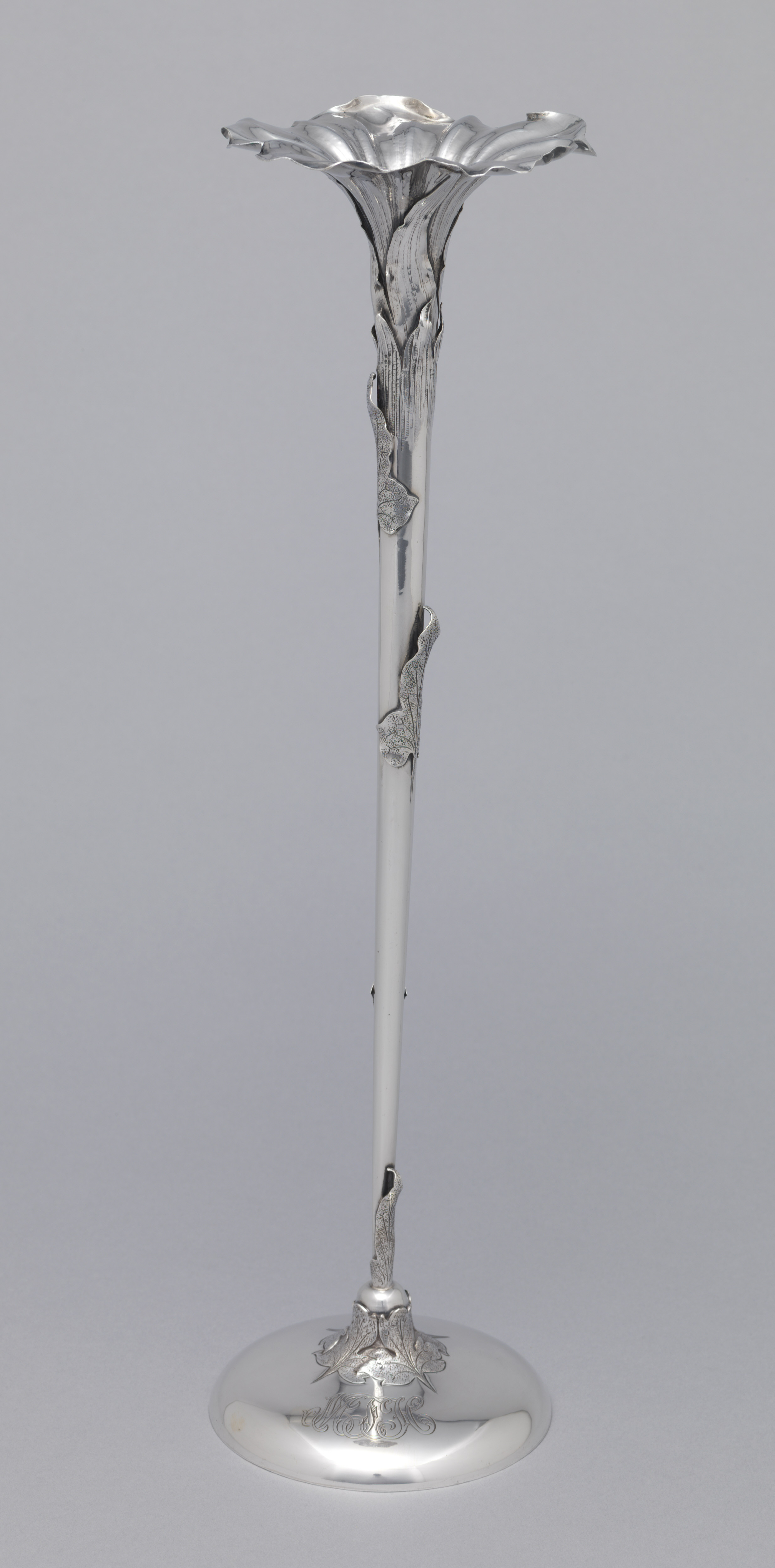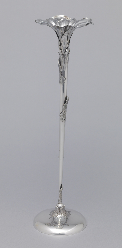 Vase Vase; Manufactured by Redlich and Co.; Retailed by Grogan Co.; USA; silver; H x diam.: 44 × 12.8 cm (17 5/16 × 5 1/16 in.); Gift of Denis Gallion and Daniel Morris; 1994-118-20