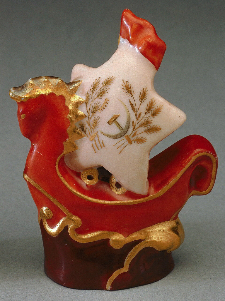 This complete chess set, known as The Reds and the Whites (or The Communists and the Capitalists), is one of the early examples of propaganda porcelain produced by the State Porcelain Factory in the years immediately following the 1917 Russian Revolution. The set was designed by one of the greatest modelers at the factory, Natalia Danko, and was introduced soon after the establishment of communism in Russia.
