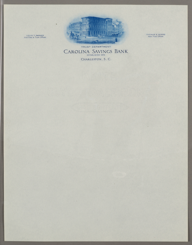 Letterhead, Trust Department/Carolina; Manufactured by William T. Manning Company; USA; photogravure on paper; Gift of Edward T. and Mimi I. Manning; 1994-14-21