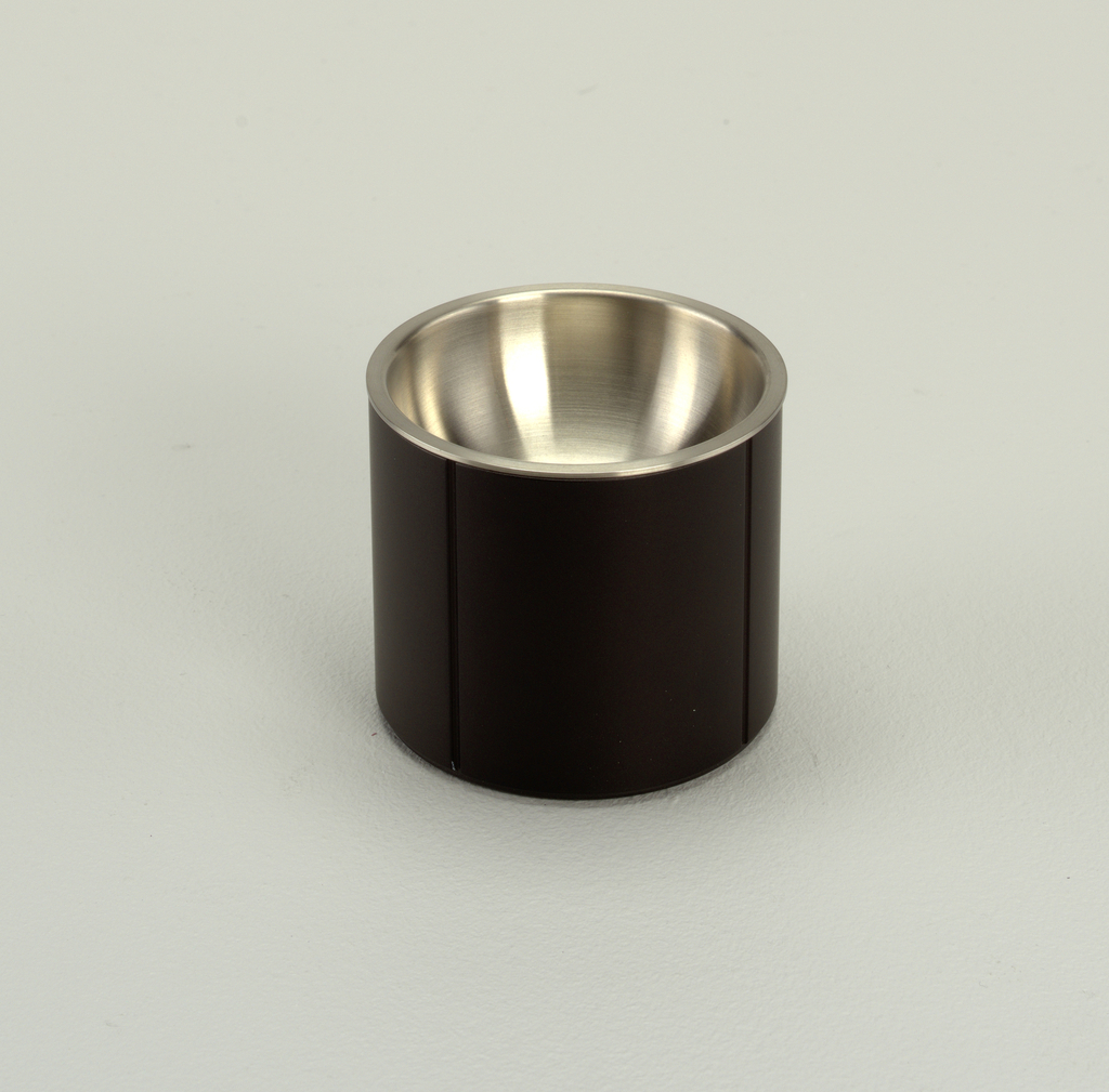Madison Paper Clip Cup; Designed by Jorgen Moller; Denmark; aluminum; Overall: 5.3 x 6 cm diameter (2 1/16 x 2 3/8 in. diam. ); Gift of Arango Design Foundation; 1994-31-59-a,b